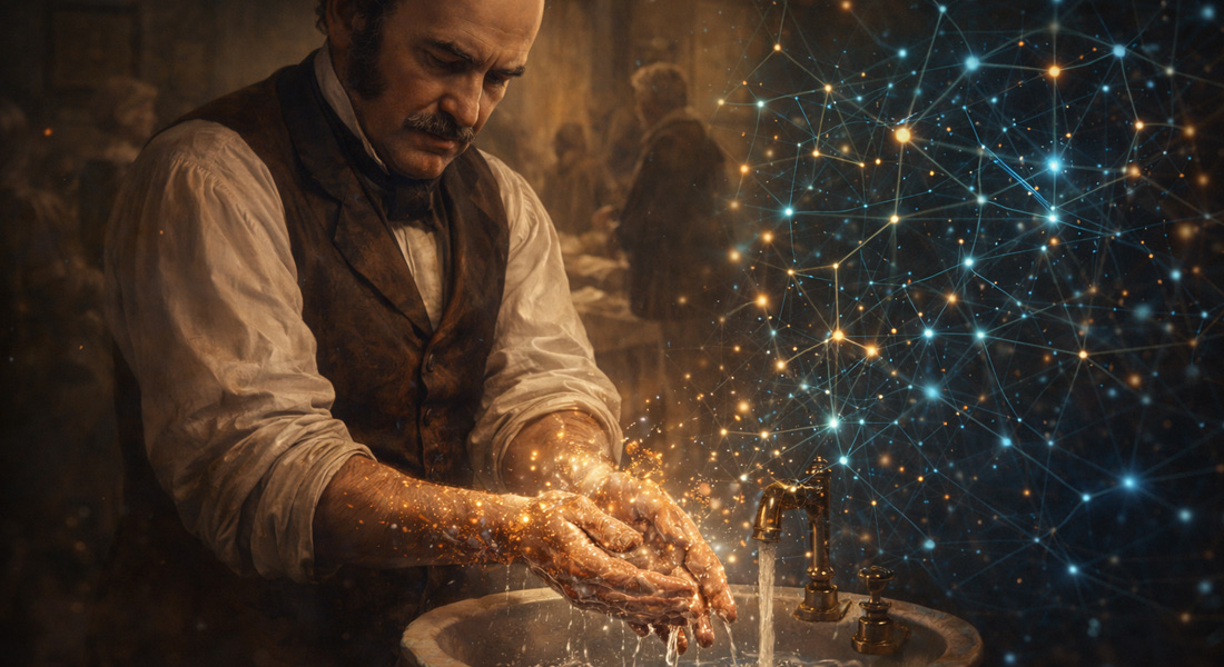 In the 1800s, a physician named Ignaz Semmelweis noticed a disturbing pattern: women were dying in hospitals after childbirth, and the rates were drastically higher in the ward where doctors moved directly from autopsies to deliveries. He proposed a simple, radical idea — that doctors were carrying invisible particles from one patient to the next.
